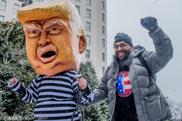Backbone Campaign and NYC allies marked the kickoff of a nationwide tour of a giant Donald Trump puppet head on December 30,2017; by staging The Citizens Arrest of Donald Trump outside Trumps residence in Midtown Manhattan, demanding the United States to impeach and remove Donald Trump and set a national standard for leadership and accountability. (Photo by Erik McGregor)